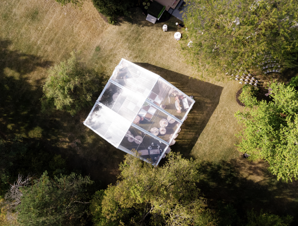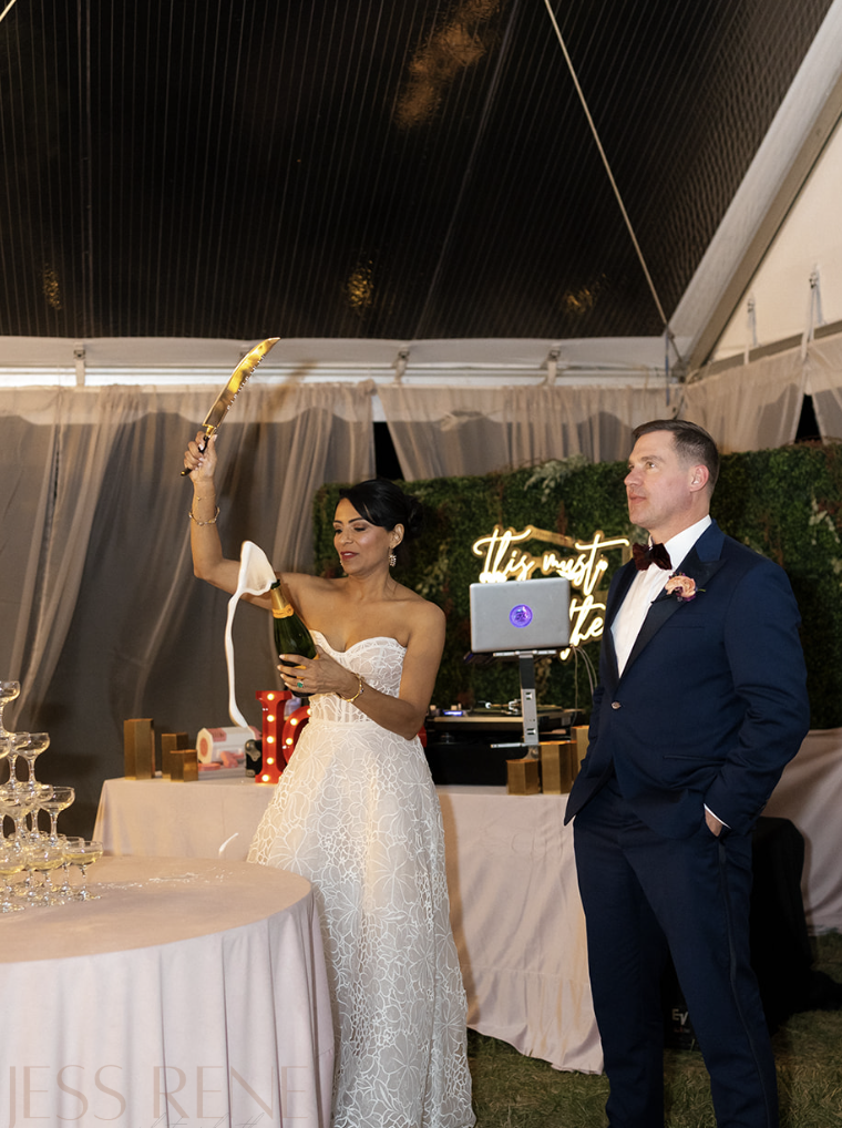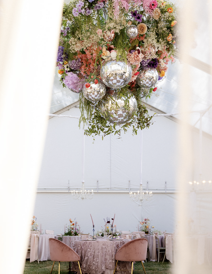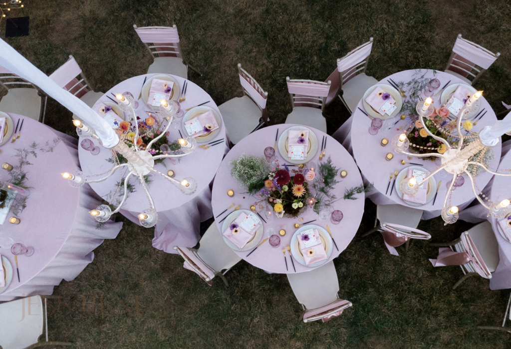 The highlight? A stunning tented reception that turned the property into a dream venue. The bride herself designed and crafted the breathtaking floral chandelier that hung above the dance floor — a true labor of love that became the centerpiece of the night. Every detail, from the layered textures to the soft, romantic lighting, blended seamlessly into the lush outdoor setting.